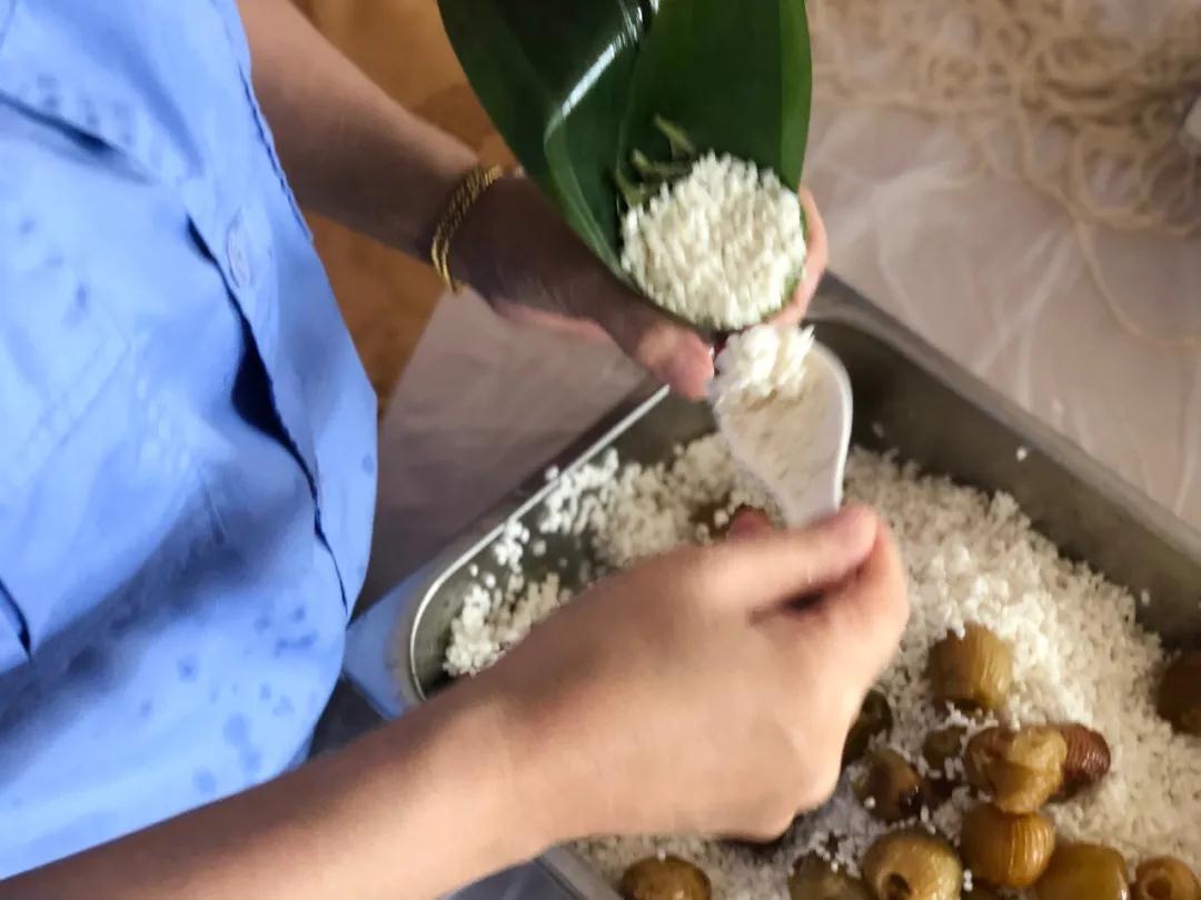 前來參加活動(dòng)的職工們包起粽子來可謂是輕車熟路,游刃有余,每個(gè)步驟都做的干凈利落,一點(diǎn)也不含糊。一片片清香的粽葉,一粒粒晶瑩的糯米,在一雙雙巧手下,瞬間變成了各式各樣漂亮誘人的粽子,整個(gè)現(xiàn)場(chǎng)談笑風(fēng)聲、粽香四溢。