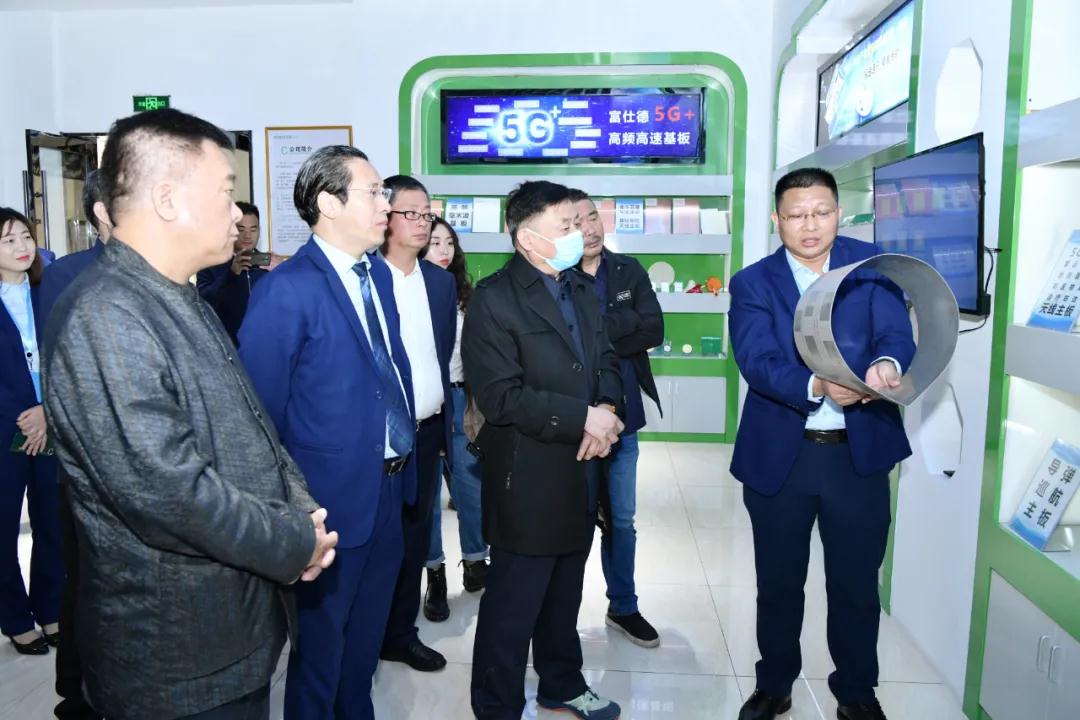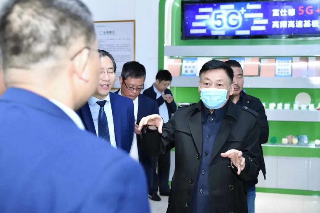 院士一行參觀了我司展廳,在參觀展廳過程中,陳初讀總經理、張向宏總經理、邵志偉總經理分別向院士一行介紹了富仕德旗下“三大主題”系列產品:5G+高頻高速基板、SMC復合材料及其模壓結構件以及特種功能紡織品。